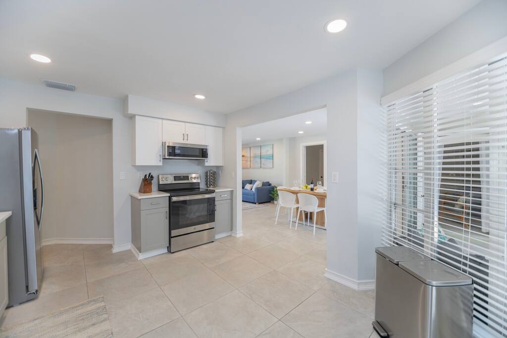 House Rules Checking In and Out: - Arrival: You can settle in anytime after 4:00 PM. We'll email you the access code and Wi-Fi password the day before your arrival. - Departure: check out by 10:00 AM to give our cleaning team time to prepare for the next guests - Locking Up: When you head out, please make sure the door is locked behind you. Your unique access code will expire after your stay. Things to Keep in Mind: - Maximum Stay -Stays cannot exceed 28 days without prior written approval. - No Smoking - No Events, Parties, or Large Gatherings - Must Be at Least 25 Years Old to Book - No Pets Allowed- We maintain a pet-free property to accommodate guests with allergies and to protect our furniture. - Respect Our Neighbors - Please keep noise to a minimum before 8 AM and after 10 PM. - No Unregistered Guests or Visitors Allowed- The maximum property capacity is 6 people. Liability Disclaimer -Our pool is a maximum depth of 6 feet (when full). For your safety, diving is strictly prohibited. As the pool is up to 6 feet deep and not fenced, we caution that the property may not be suitable for young children. All children must be supervised by an adult at all times when in or around the pool area. By using the pool, you agree that the Host is not liable for any injuries, deaths, or property damage that occur during your stay. Any pool toys are provided purely for guest convenience and use is at your own risk. Safety First: - No glass in the pool area. -Diving is strictly prohibited. - Pool Maintenance - Our pool is heated for your comfort and cleaned regularly. Our pool is heated to a maximum of 85°F and cleaned weekly, but during storms with rain or wind, dust, tree droppings, pollen, and other debris may wash into the pool. - Please be aware that our pool maintenance and landscaping services may be scheduled during your stay. These services are essential to maintaining the property’s appearance and functionality. Bikes, Cameras, and Grilling: - We have two bikes for your use during your stay. Please note that while we encourage you to use them, we are not responsible for any injuries or accidents that may occur while riding. - We have two exterior cameras: one monitoring the front door (Arlo doorbell) and another monitoring the garage door (myQ video keypad). Rest assured, there are no cameras inside the house. - Enjoy the grill! Grill must be attended at all times. Be sure the fire is completely extinguished and the grill is off before leaving the area and let us know if propane is running low. Children must be closely supervised in this area. Keeping Things Tidy: - Shoes Off: We love our floors, so please leave your shoes by the entrance. - Bedroom Bliss: Let's keep the bedrooms a relaxing space for sleep. Please enjoy your meals and drinks in the kitchen or dining area. - Furniture Fun: We've carefully arranged the furniture to create a cozy atmosphere. Please leave it as you found it. - Grill Clean-Up: After your BBQ feast, please give the grill a quick clean. - Oops! Accidents happen. If anything gets broken, please let us know right away. A Few More Helpful Notes: - No illegal substances are allowed on the premises. - Air conditioner: you can adjust the temperature using the thermostat on the wall is close to the bedroom. Please try to keep it between 70 and 77 degrees. - Dishwasher: you will find the dishwasher tablets under the kitchen sink. - Dryer and washer are in the garage. - Florida Wildlife: Please be aware that palmetto bugs (cockroaches) are common in Florida's outdoor environment. While we take precautions to keep them out of the property with regular pest control and by sealing entry points, they may occasionally enter, especially if doors or windows are left open. Seeing one or two does not necessarily indicate an infestation. We appreciate your understanding. Checking Out: Before you leave, please do these three quick things: - Dishes and Trash: Please place all dishes in the dishwasher and start the easing cycle, empty the trash, and take it to the outdoor bin. - Load the white bath towels in the washer and start the washing cycle. - Lock Up: Ensure all doors and windows are securely locked when you leave. Thanks for helping us keep the house in great shape for everyone! We hope you have a fantastic stay!